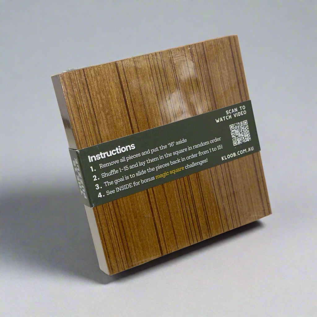 Shuffle the pieces and put 1-15 back in the square. Then try and slide them around until they are back in order from 1-15.